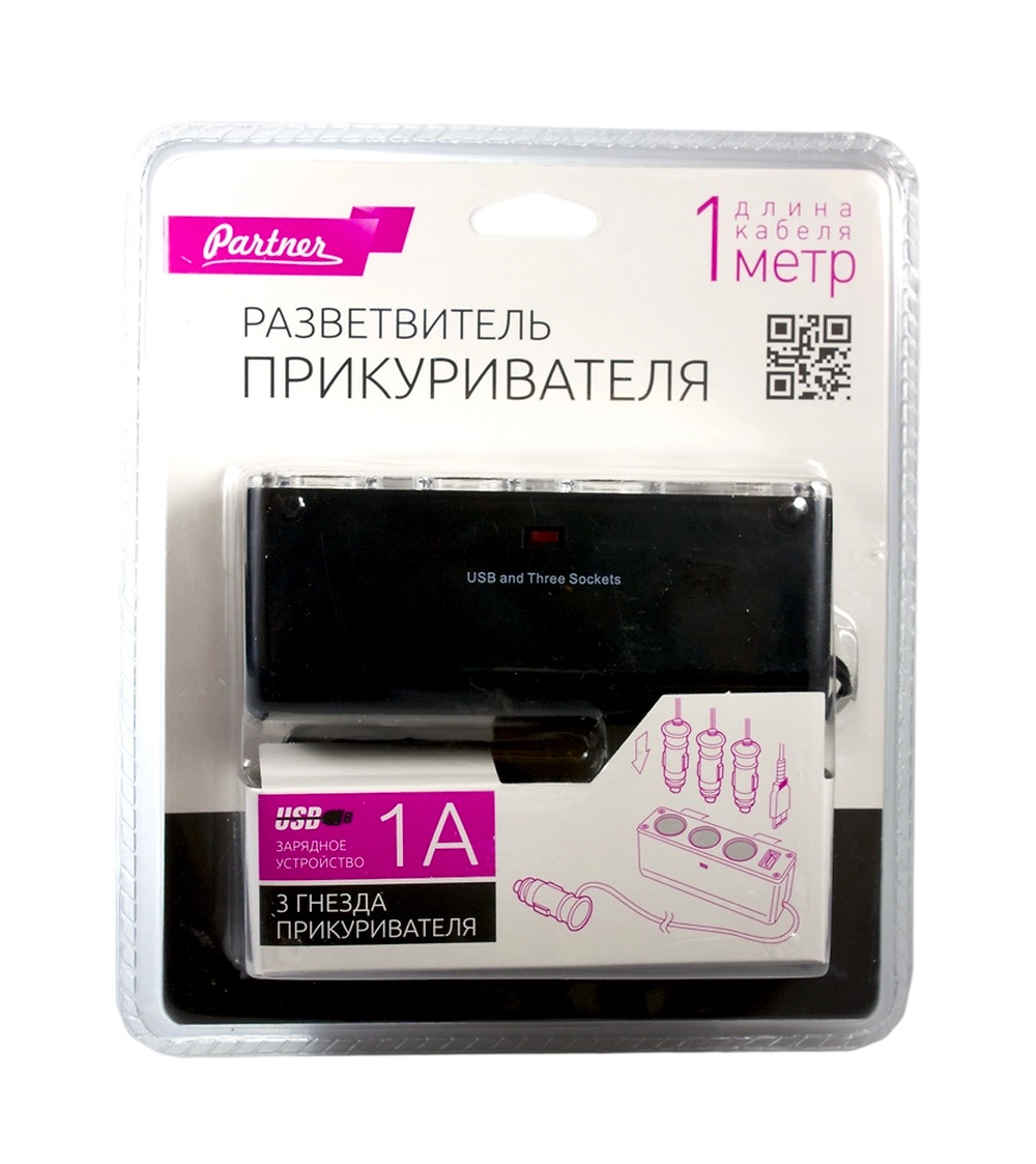 Соединяется с колодкой через отдельный центральный шнур. Благодаря такой конструкции можно расположить разветвитель там, где более удобно Вам, не ограничиваясь местом расположения прикуривателя.
