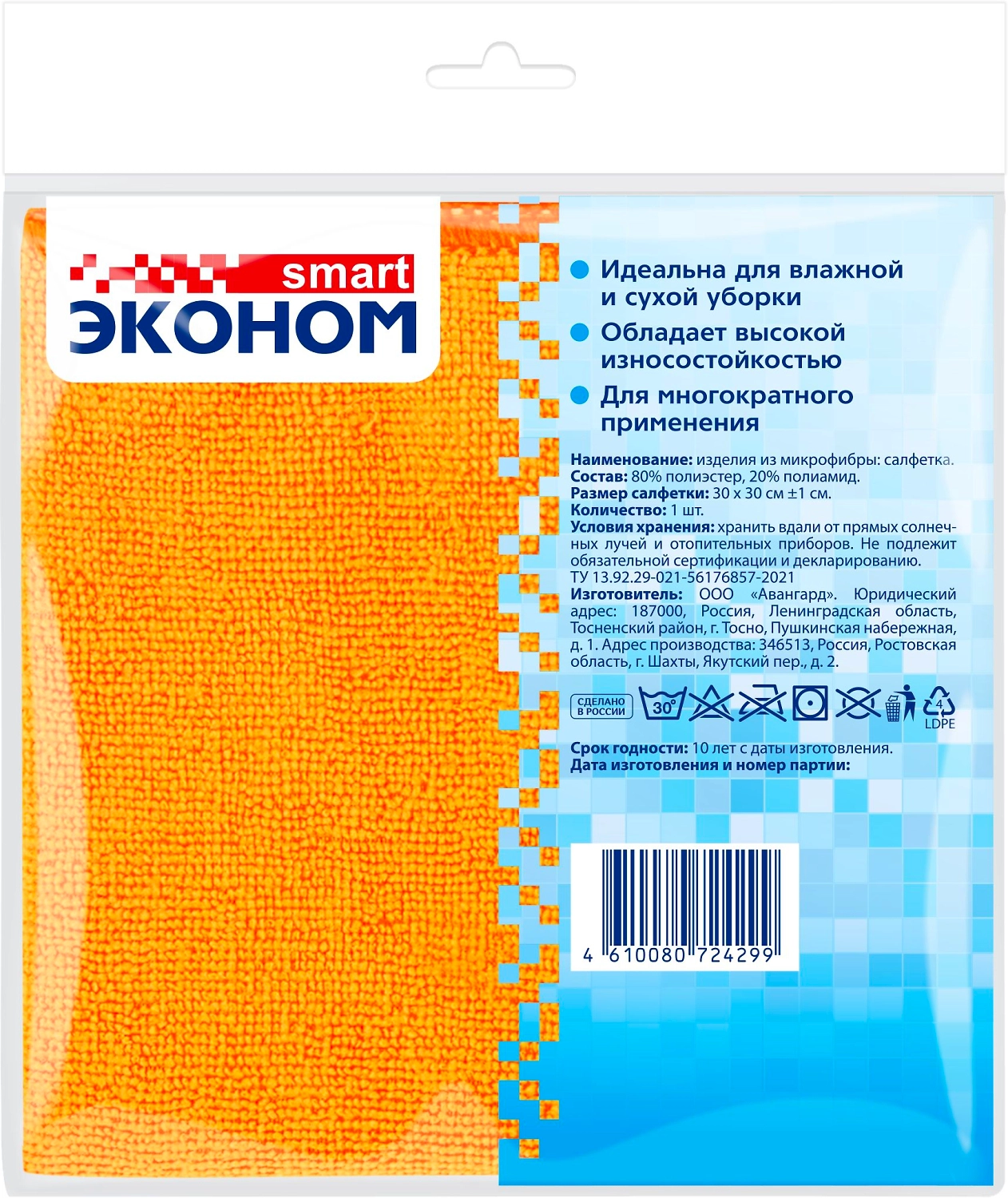 Салфетки №1 30x30 см из микрофибры в ассортименте от бренда ЭКОНОМ SMART – незаменимый аксессуар для дома.
