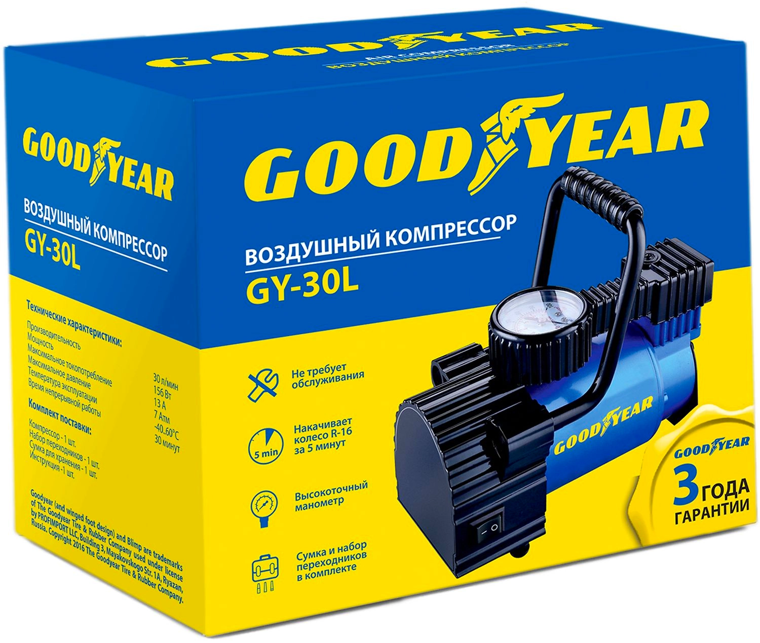 Компрессор автомобильный GOODYEAR GY-30L 30 л/мин