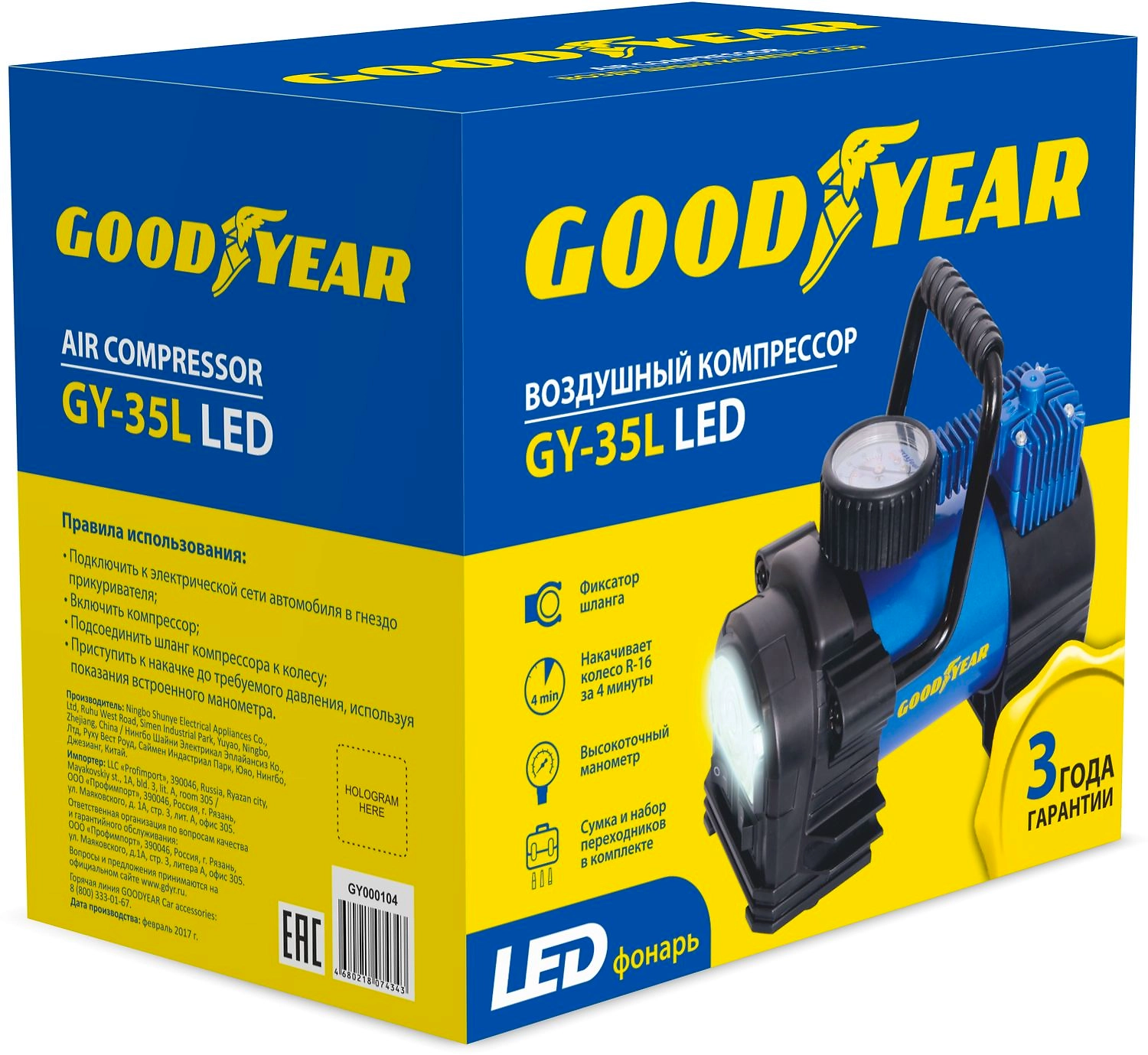 Компрессор автомобильный GOODYEAR GY-35L LED 35 л/мин