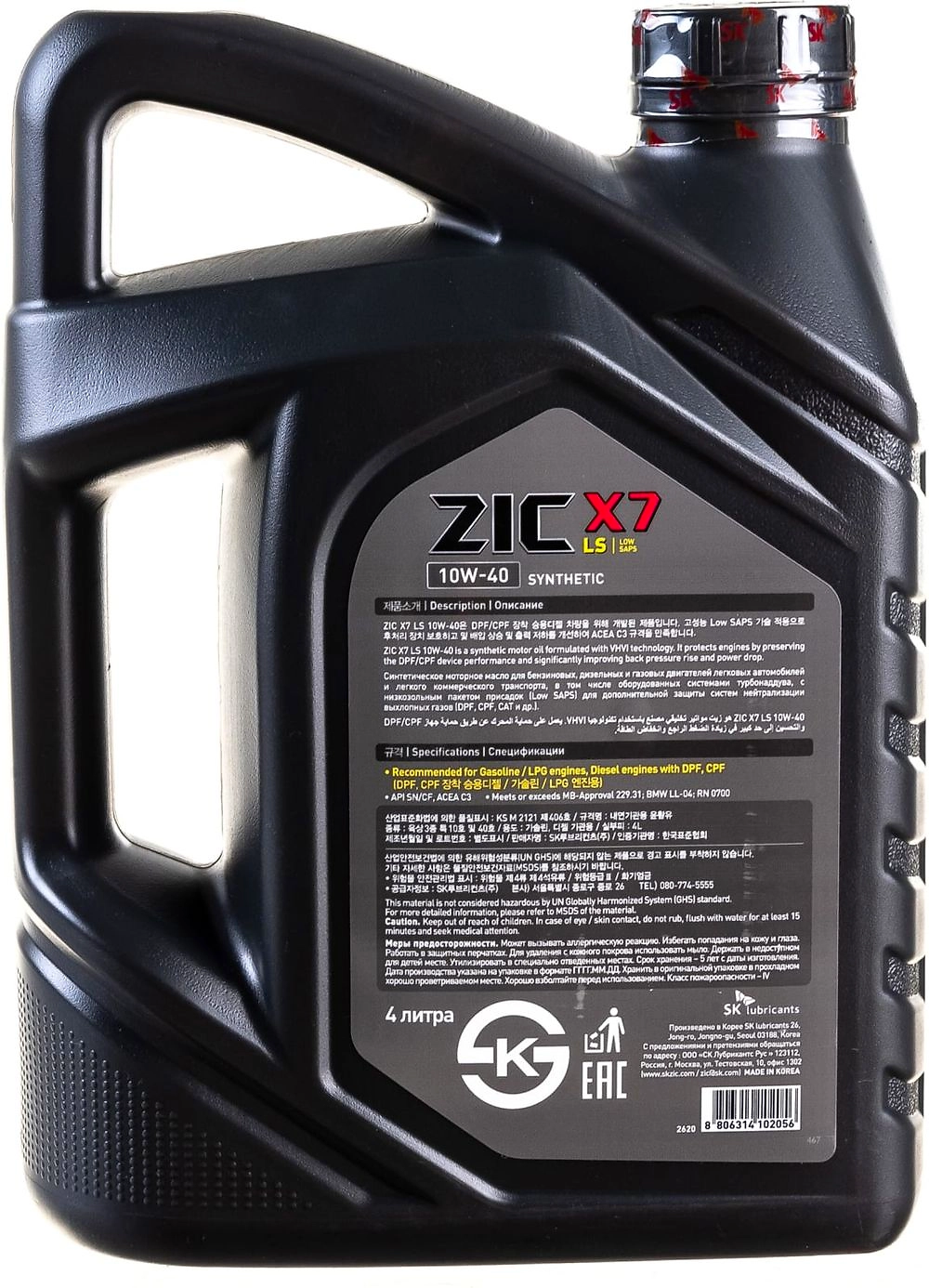 Масло моторное синтетическое ZIC X7LS10W-40 4Л