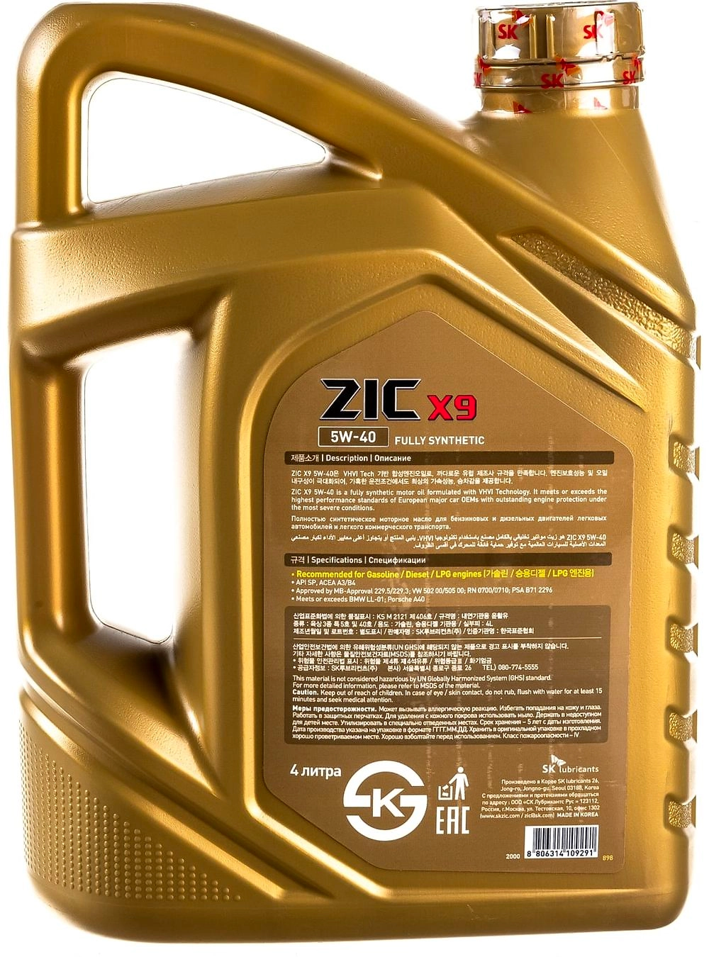 Масло моторное синтетическое ZIC X9 5W-40 4Л