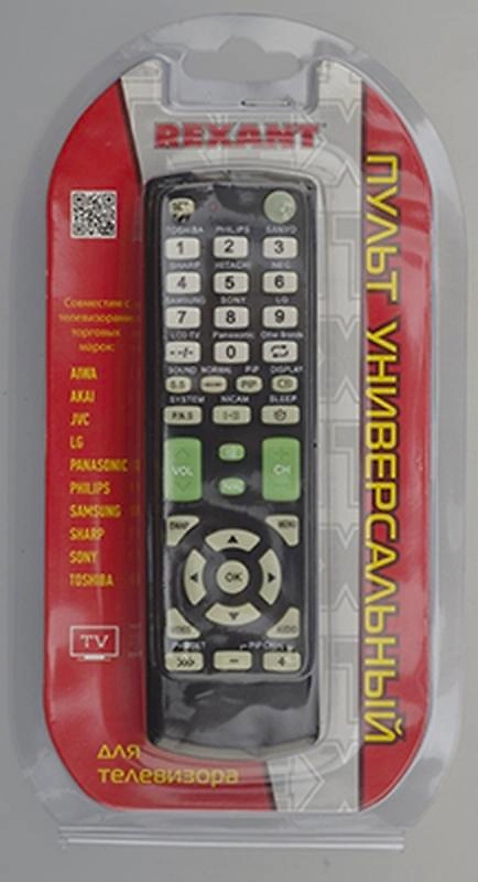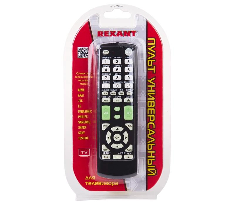 Универсальный пульт для телевизора модель RX-E877 REXANT отличается простотой в использовании и совместим с большинством марок и моделей современных телевизоров, таких как: TOSHIBA, PHILIPS, SANYO,