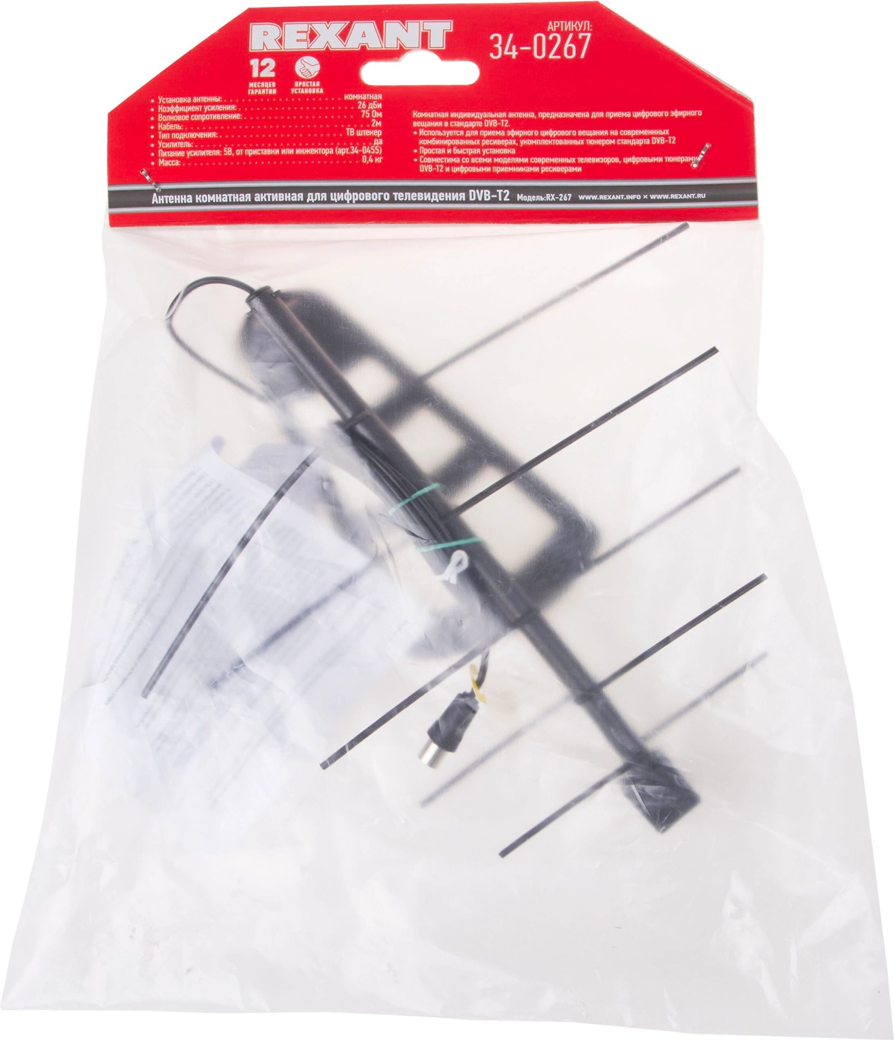 ТВ антенна комнатная для цифрового телевидения DVB-T2 Активная (модель RX-267) REXANT.