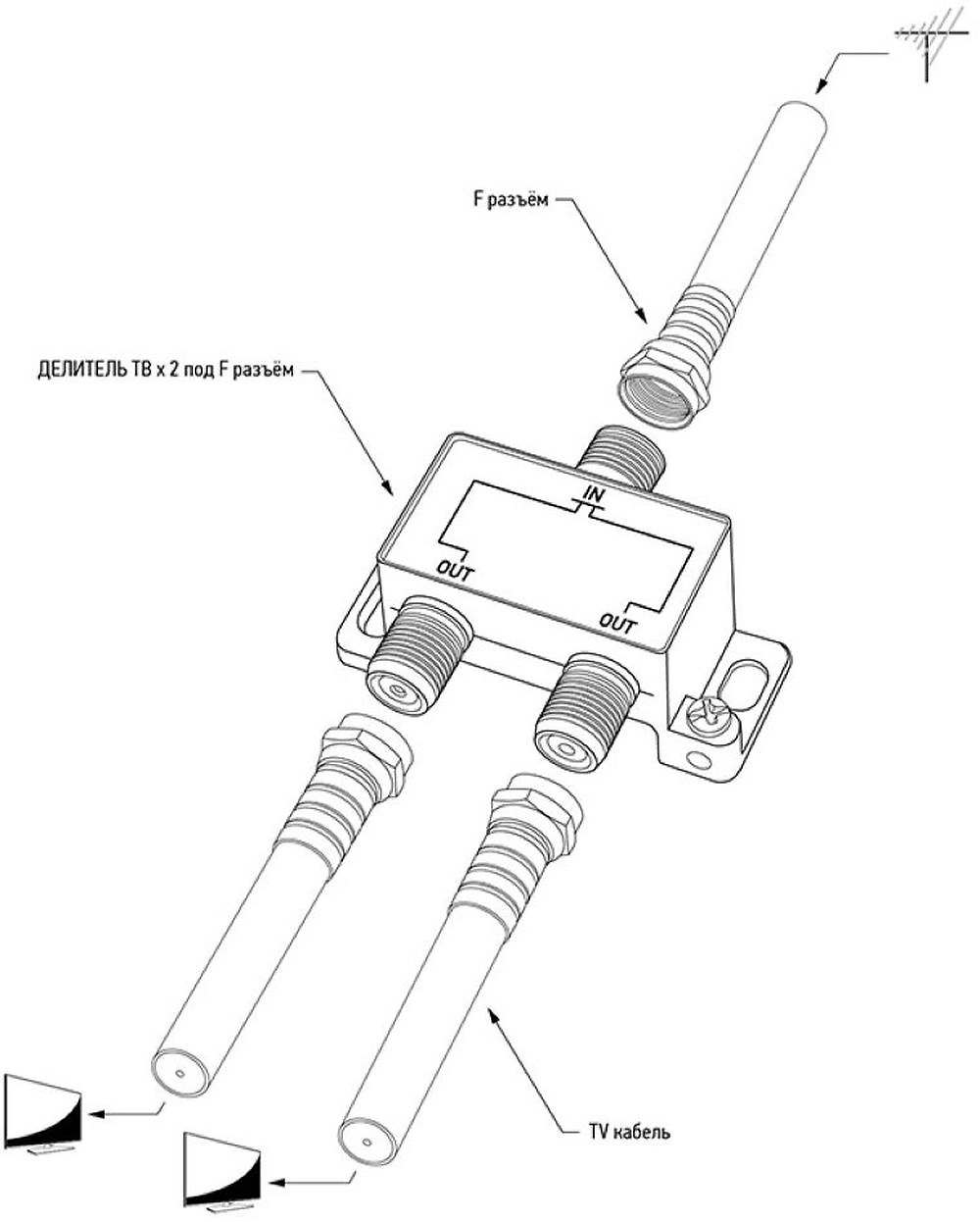 Делитель антенный предназначен для телевизионных систем и используется для подключения нескольких телевизионных аппаратов к одной антенне.