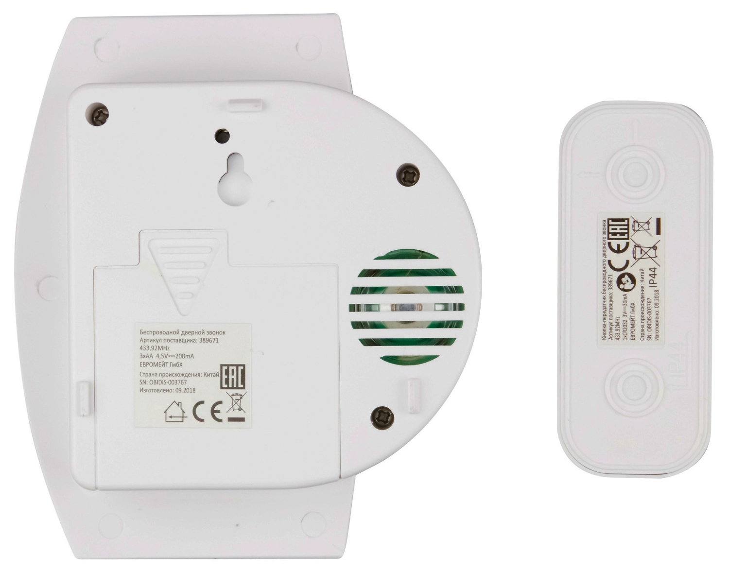• Комплектация Кнопка звонка