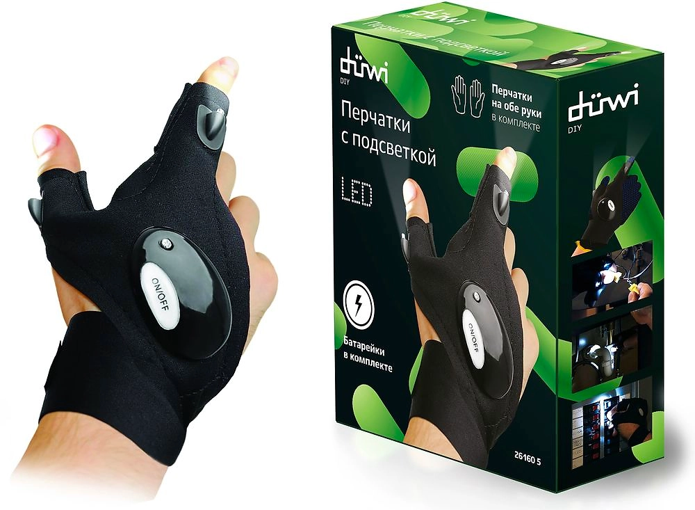 Перчатка со встроенной подсветкой Spider Glove Lamp, комплект 2 шт.