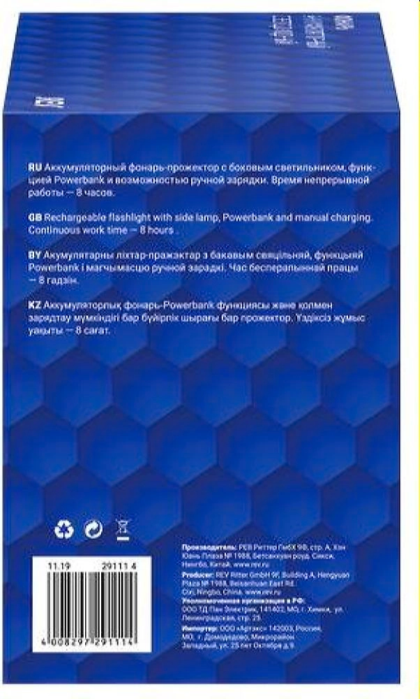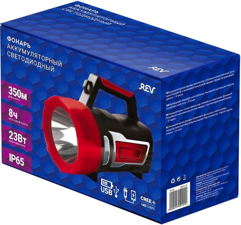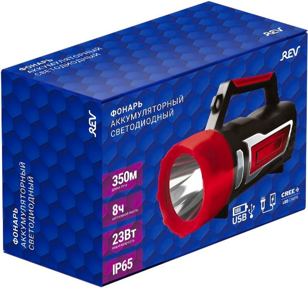 Аккумуляторный светодиодный фонарь с боковым светильником. Оснащается динамо-машиной, обеспечивающей возможность ручной подзарядки. Литиевая батарея позволяет устройству беспрерывно работать на протяжении 8 часов. Фонарь заряжается от любого USB совместимого зарядного устройства с помощью micro-USB кабеля входит в комплект поставки . Фонарь может использоваться в качестве внешнего аккумулятора для подзарядки мобильных устройств. Длина луча достигает 350 метров.