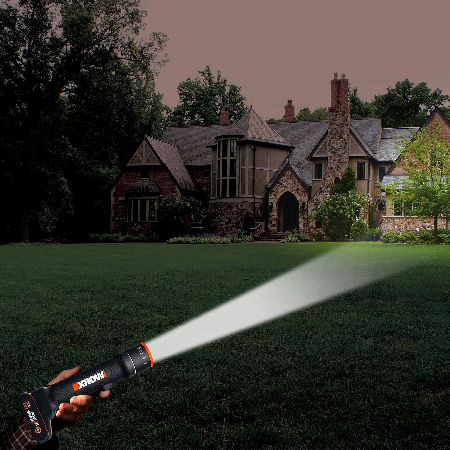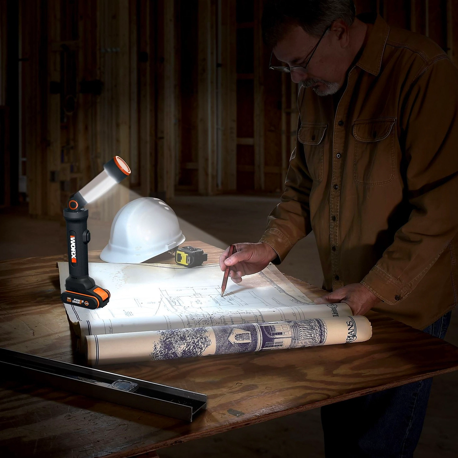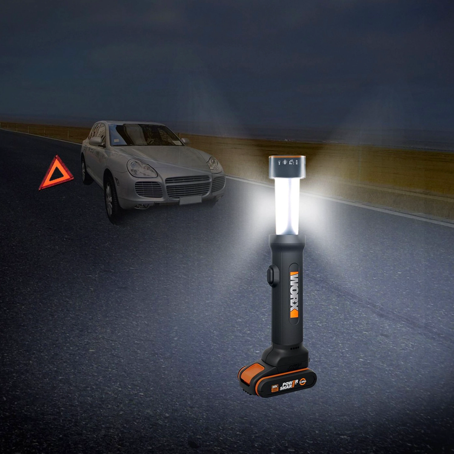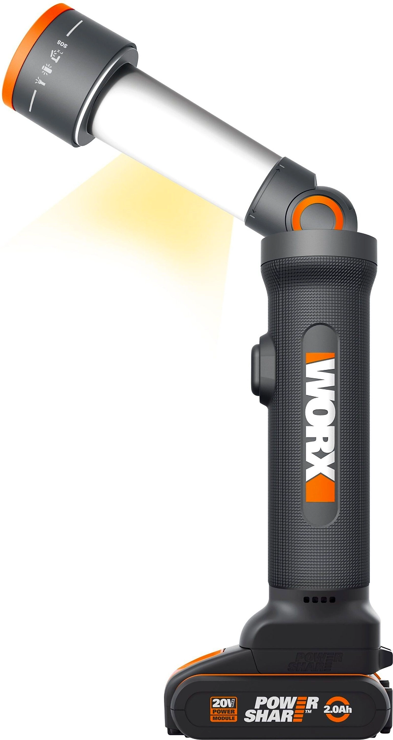 Аккумуляторный светодиодный фонарь WORX WX027.9 - 4 режима работы: классический фонарик, настольная лампа с двумя режимами работы (ночник и освещение на полной мощности), SOS сигнализация.