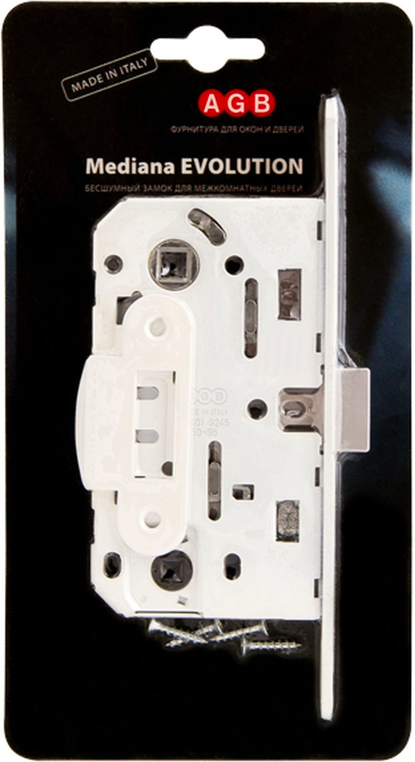 Замок врезной бесшумный B01102.50.34.567 с защелкой WC серии MEDIANA EVOLUTION предназначен для установки в межкомнатные двери. В комплектацию входит ответная планка B01000.13.