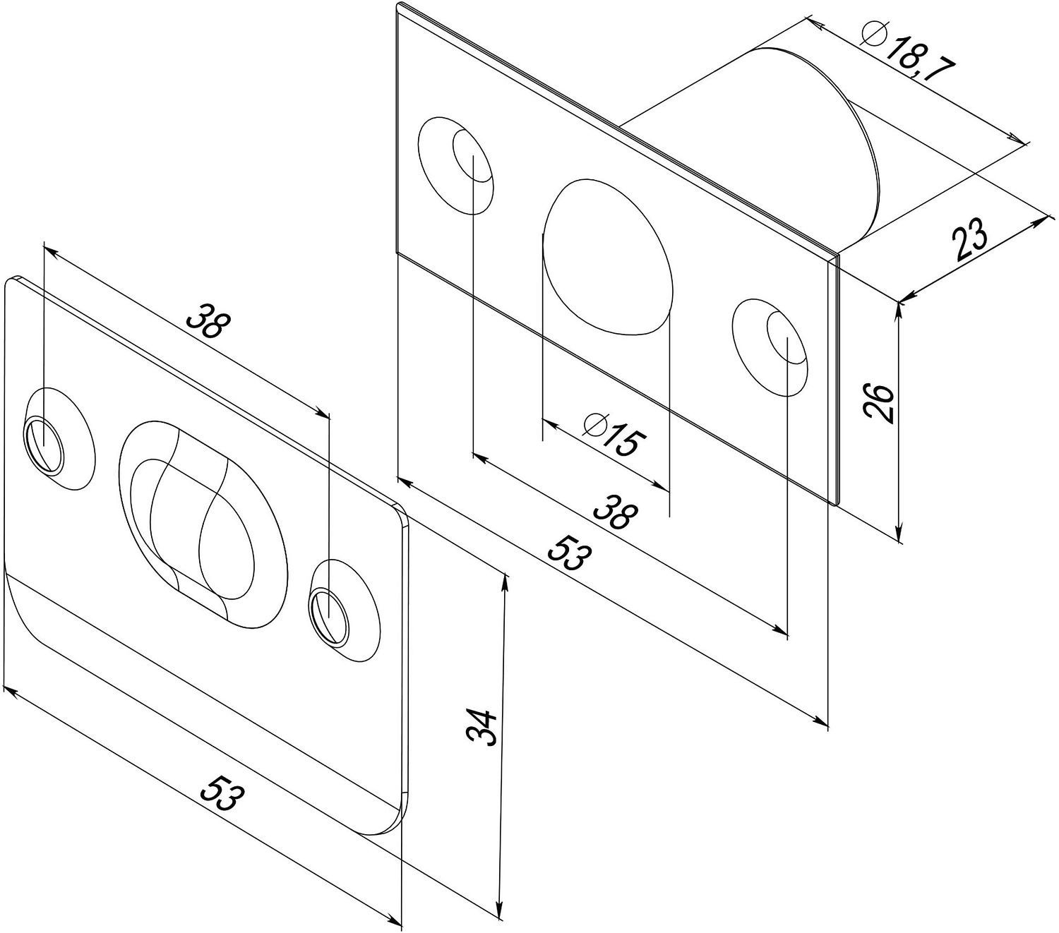 Дверная защелка FUARO 26x53x23 мм металл никель