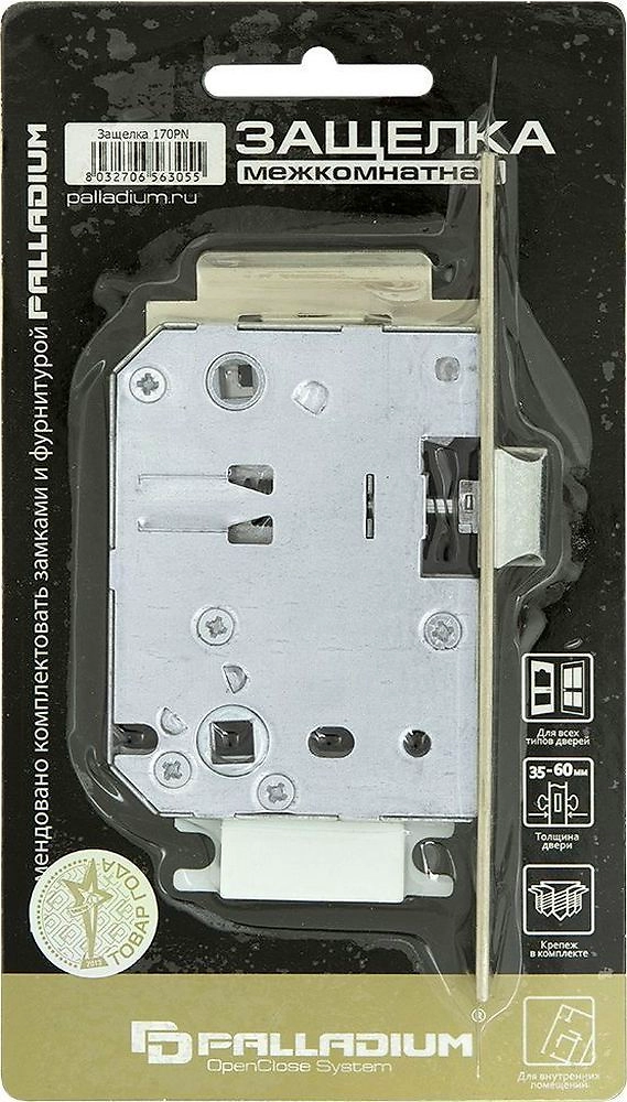 Дверная защелка Palladium 170 PN 195х76х18 мм ЦАМ матовый никель