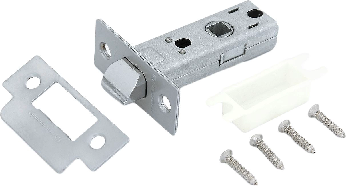В комплекте поставки: защелка межкомнатная, ответная планка, пластиковая # Вставка: под ответную планку, шурупы в цвет планки.