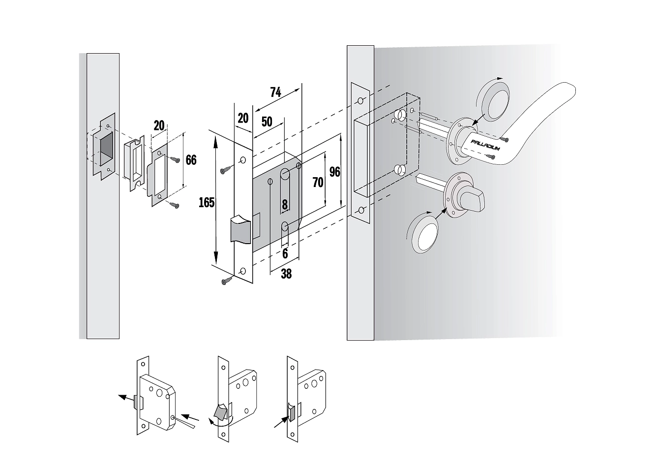 Дверной замок межкомнатный Palladium 170 PB латунь