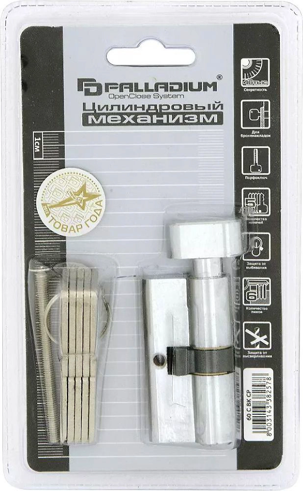 Цилиндр Palladium 60 C BK CP (30х30) мм ключ-вертушка хром