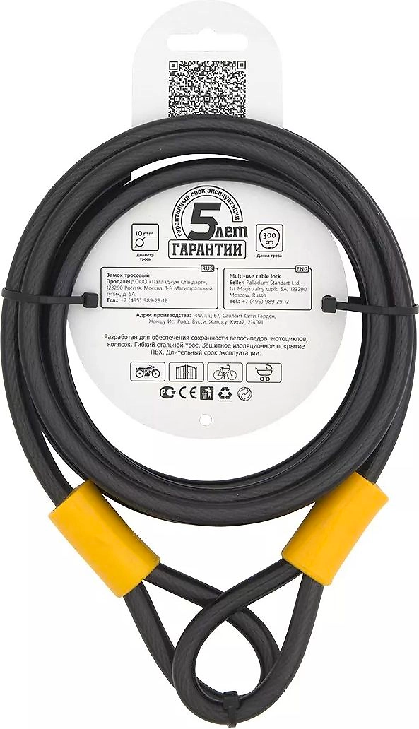 CPL-300/1,0 – самый длинный противоугонный трос Palladium. В размотанном состоянии он достигает 3 м, позволяя захватить оба колеса и раму или сцеплять одновременно до пяти (!) велосипедов.