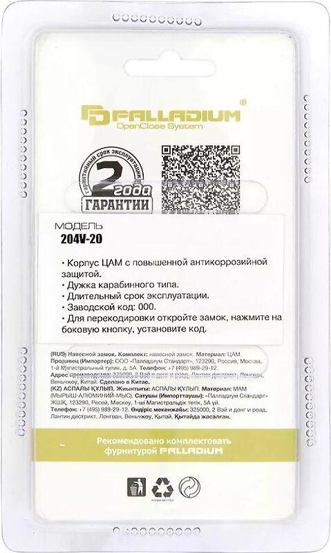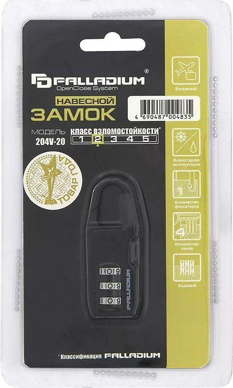 Замок навесной 204V-20 Palladium черный