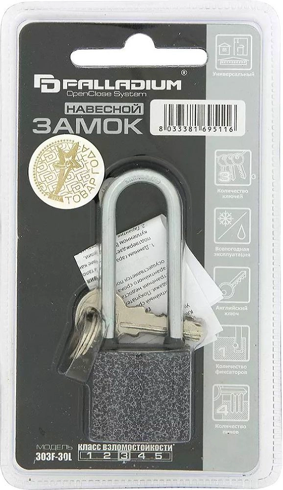 Замок навесной Palladium 303F-30L серый