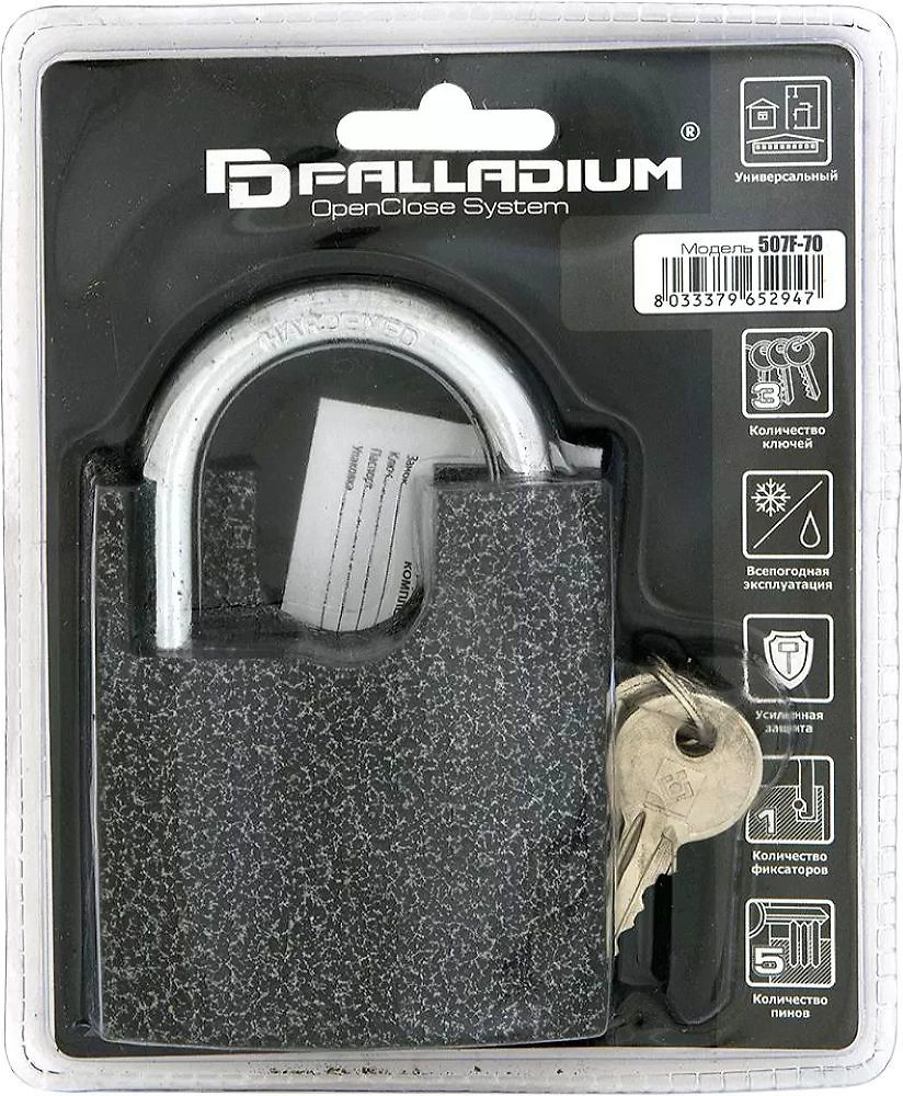 Замок навесной Palladium 507F-70 серый