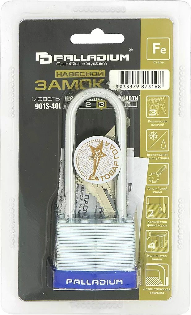 Ламинированный навесной замок 40 x 33 мм с длинной дужкой. Крепкий и универсальный: там, где другим 40 мм замкам не хватит дужки, этот наверняка защелкнется.