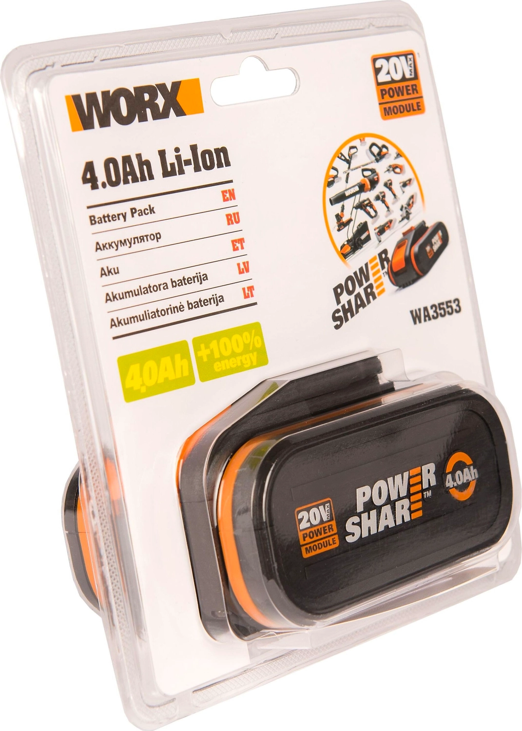 Аккумулятор WORX WA3553 20В со встроенным индикатором заряда - универсальный источник питания для всех аккумуляторных инструментов Worx. Уникальная технология позволяет сохранять оптимальную емкость даже при длительном хранении.
