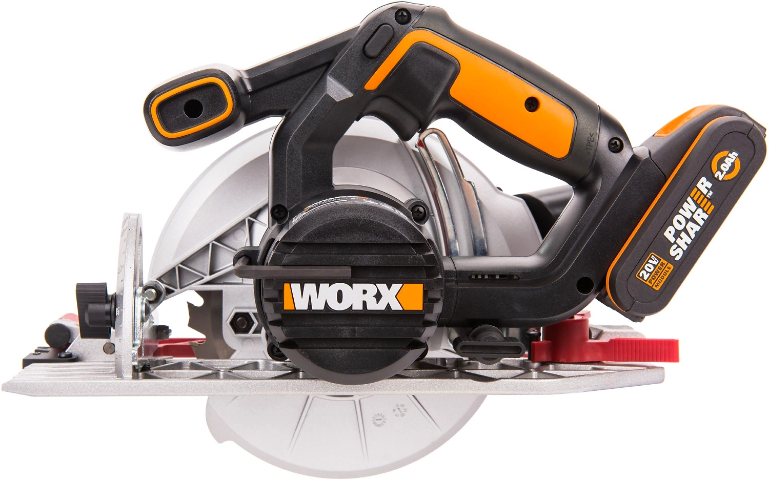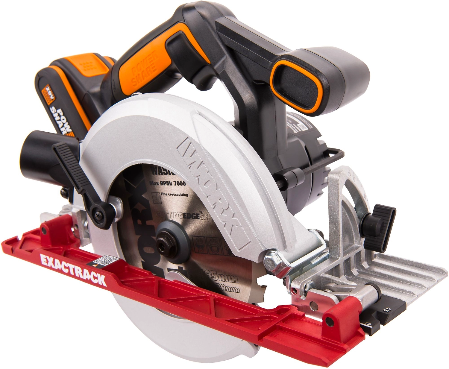 Легкая, но в то же время мощная циркулярная пила Worx WX527 работает от аккумулятора, надежно крепится на обрабатываемую поверхность и удобна в эксплуатации.