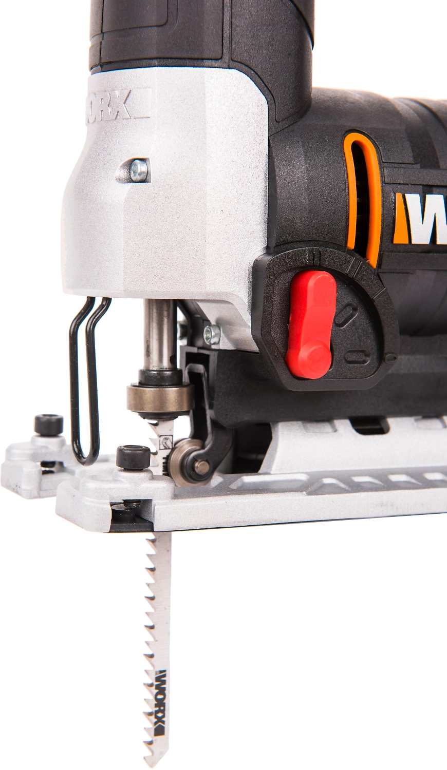 Приобретая электрический лобзик WORX, вы также получаете: параллельную направляющую, вакуумный адаптер, защитную пластину для ног, защиту от раскалывания и удобный транспортировочный кейс.