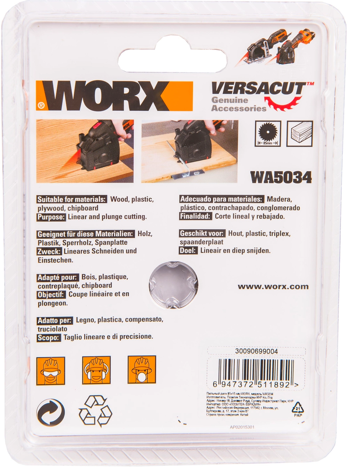 Пильный диск твердосплавный WORX WA5034 24Т ТСТ