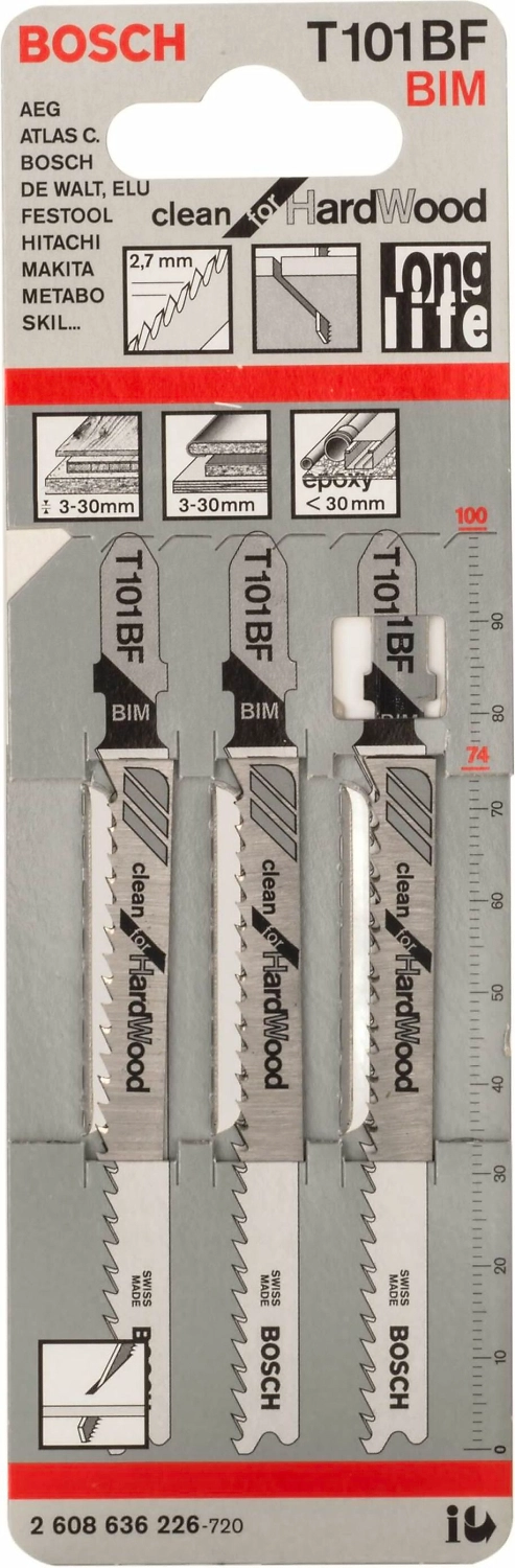 Набор пилок для электрического лобзика BOSCH Clean for Hard Wood T 101 BF 3 шт