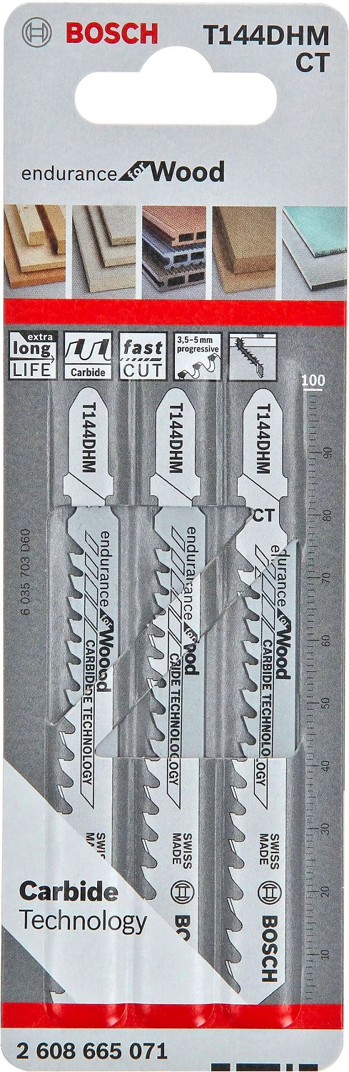 Набор пилок для электрического лобзика BOSCH Endurance for Wood T 144 DHM 3 шт