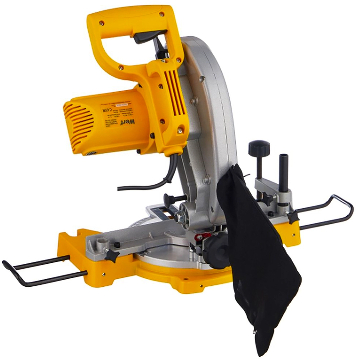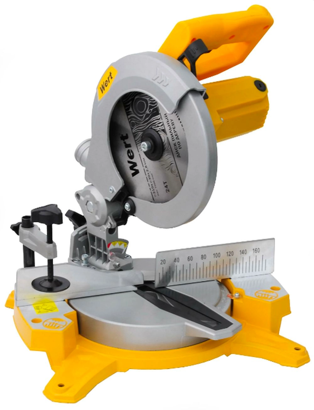 Электрическая торцовочная пила Wert MS 1321 мощностью 1300 Вт с высокой точностью распиливает материал любой формы и длины.