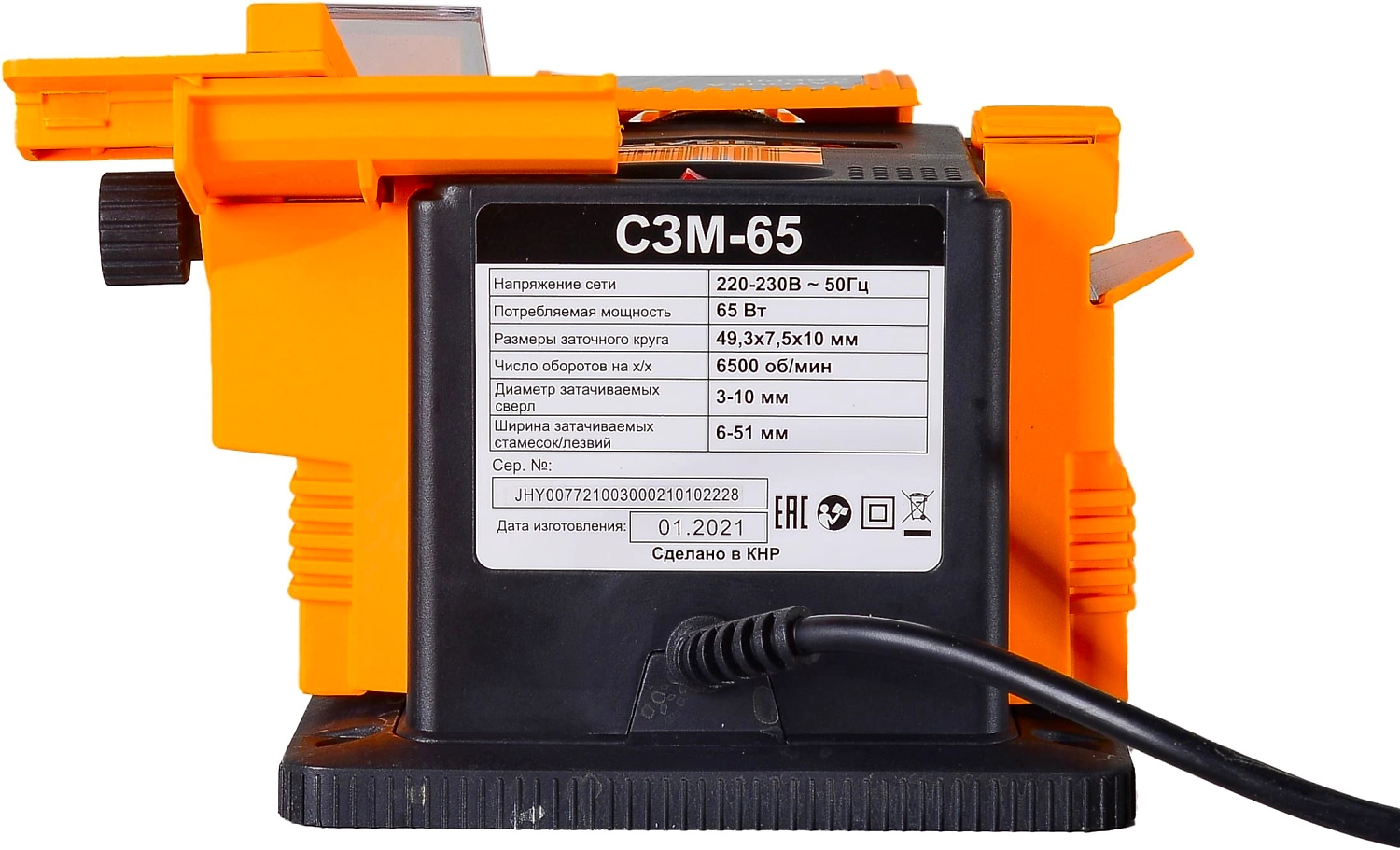 Станок заточной многофункциональный СЗМ-65 предназначен для заточки различного инструмента: сверл, стамесок, лезвий, ножниц и ножей. Прибор является универсальным, может затачивать разные типы лезвий благодаря точильному кругу диаметром 49,3 мм, который приводит в движение электромотор мощностью 65 Вт. Диаметр затачиваемых сверл: 3 – 10 мм. Ширина затачиваемых стамесок / лезвий: 6 – 51 мм.