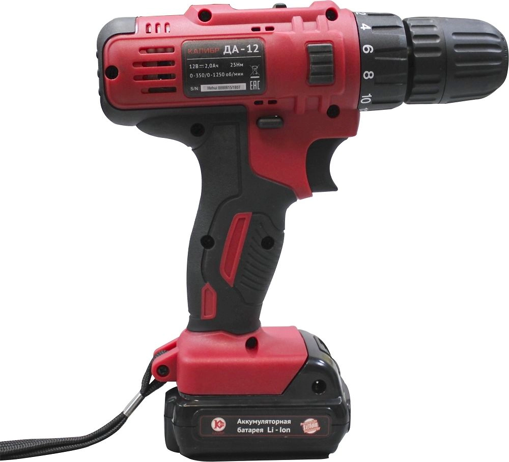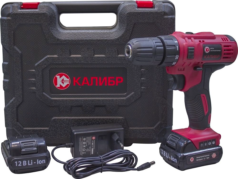 Дрель аккумуляторная КАЛИБР ДА-12 - компактный и эффективный инструмент для сверления отверстий и закручивания крепежа.