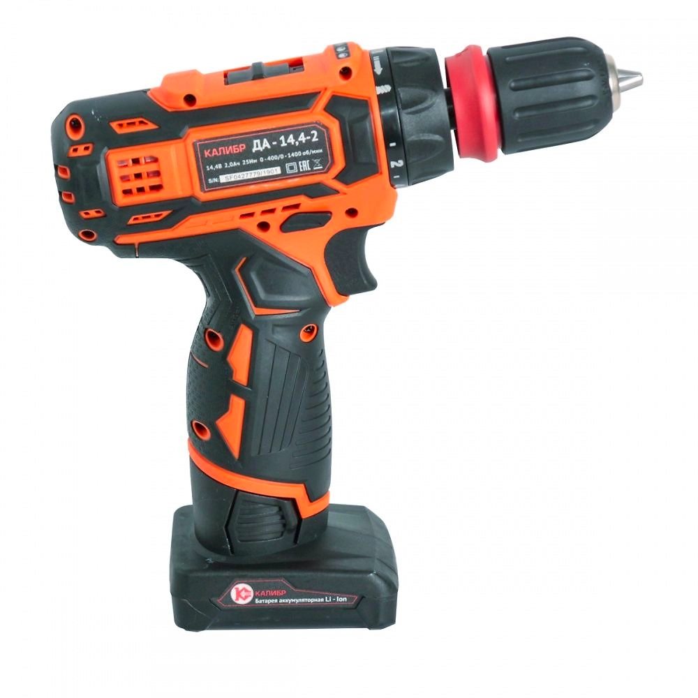 Ручная аккумуляторная дрель (сверлильная машина,) Калибр ДА-14,4-2 предназначена для сверления отверстий в цветных и чёрных металлах, пластмассах, дереве ДСП и откручивания/закручивания различного