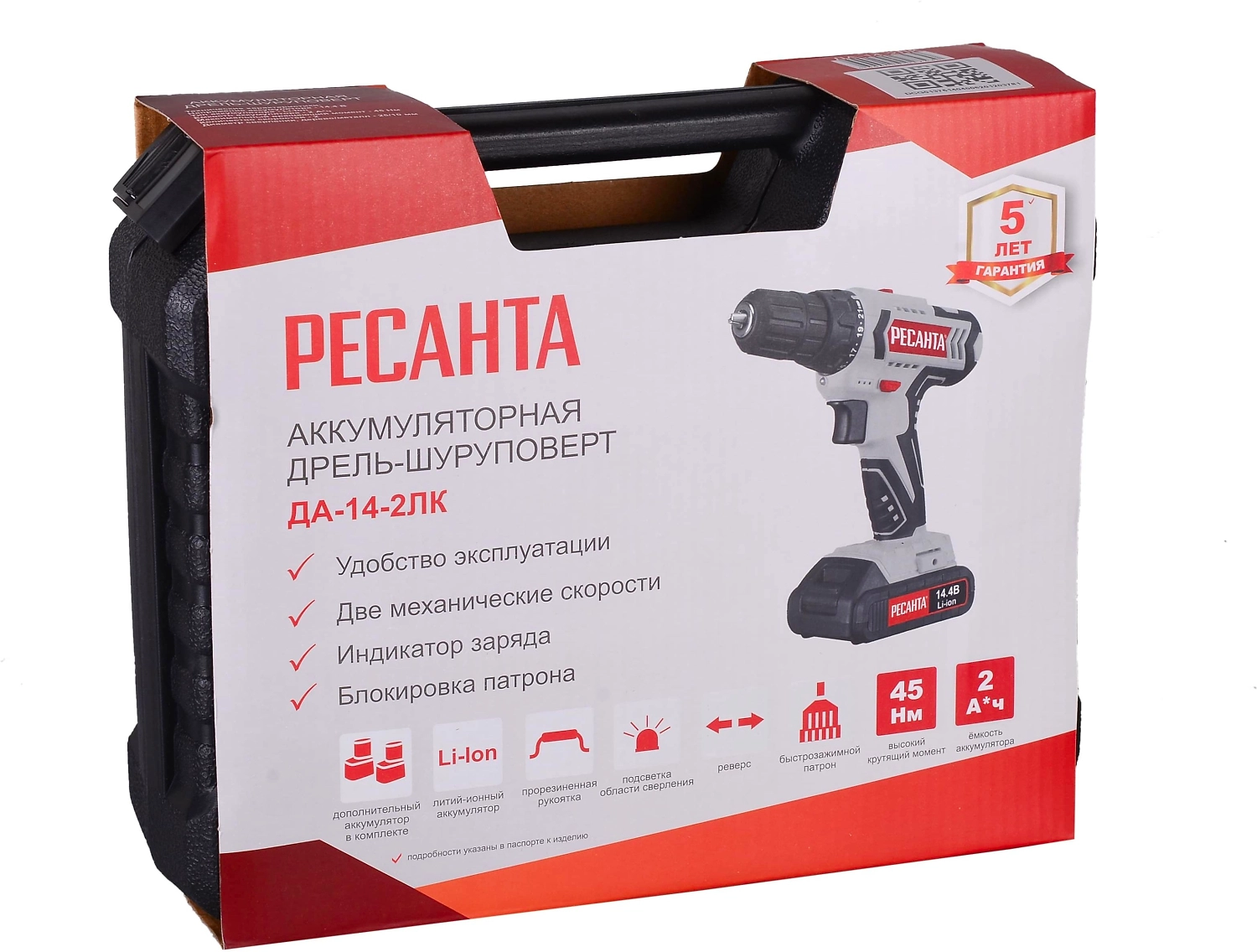 Дрель-шуруповерт аккумуляторная РЕСАНТА ДА-14-2ЛК 14,4В
