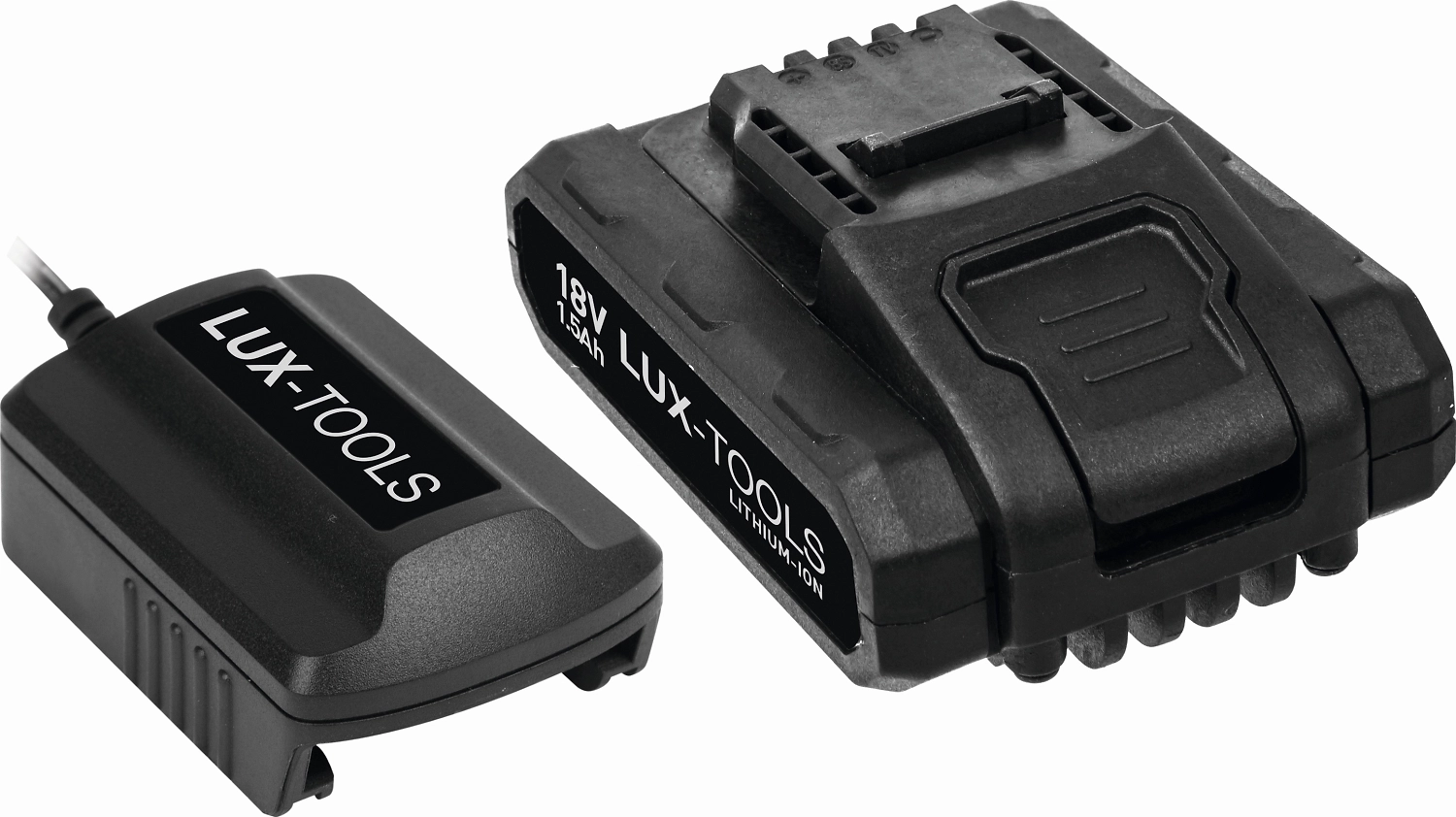 Модель поставляется с двумя сменными блоками питания емкостью 1,5 Ач и зарядным устройством.
