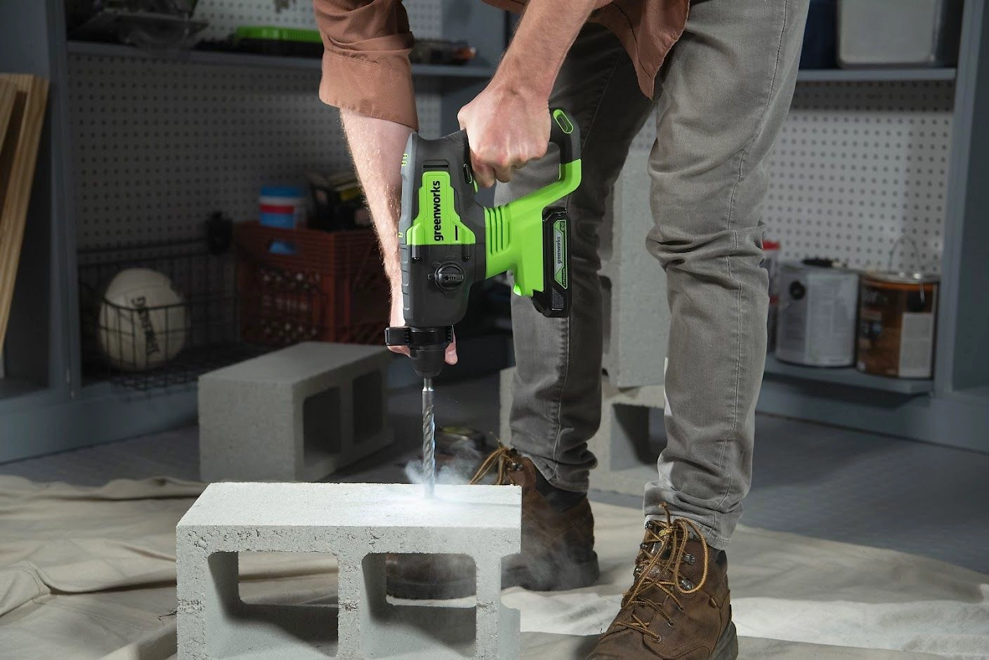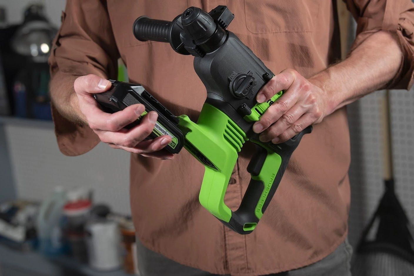 Аккумуляторный перфоратор Greenworks 24V-прекрасный инструмент для проведения строительных и ремонтных работ для дома и дачи.