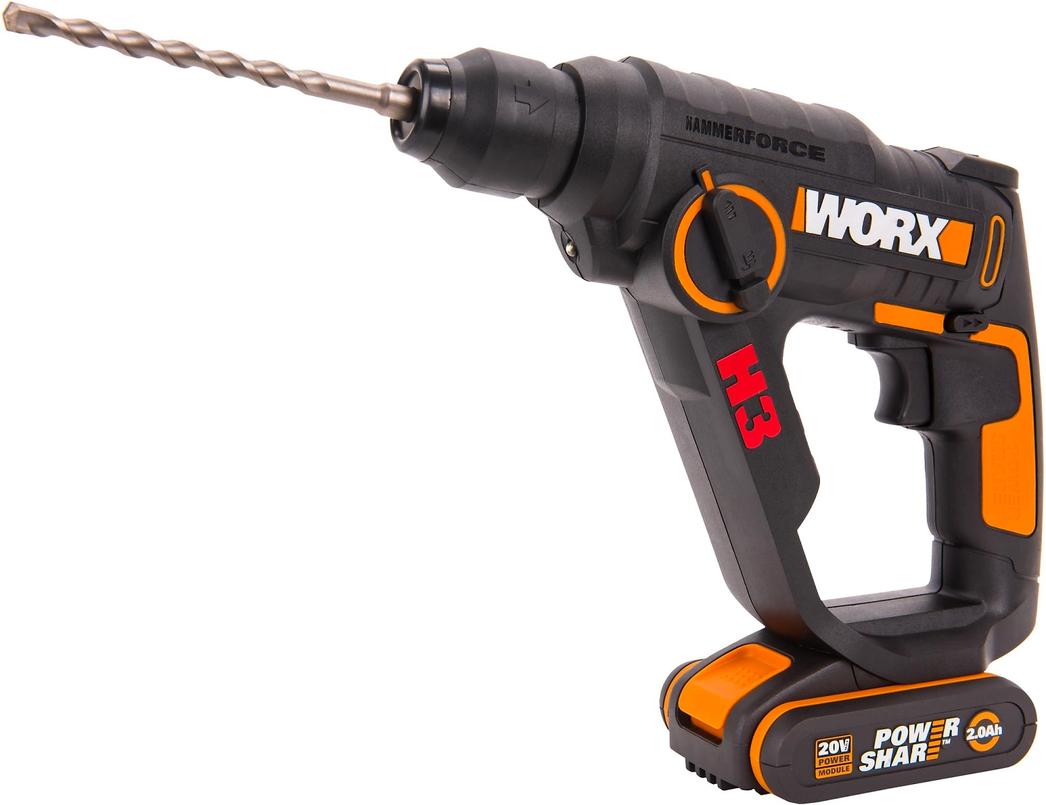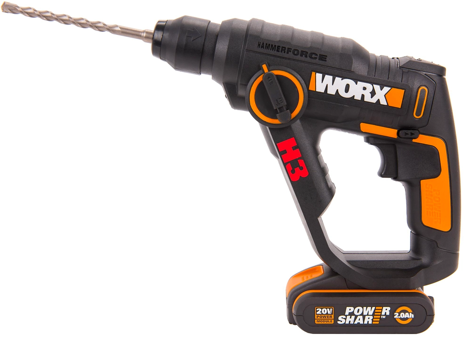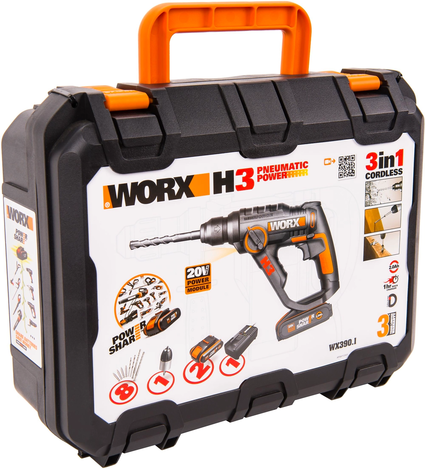 Перфоратор Worx WX390.1 - универсальный инструмент, который при замене оснастки превращается в шуруповерт и ударную дрель. Три инструмента в одном корпусе - современное решение в условиях стройки или ремонта.