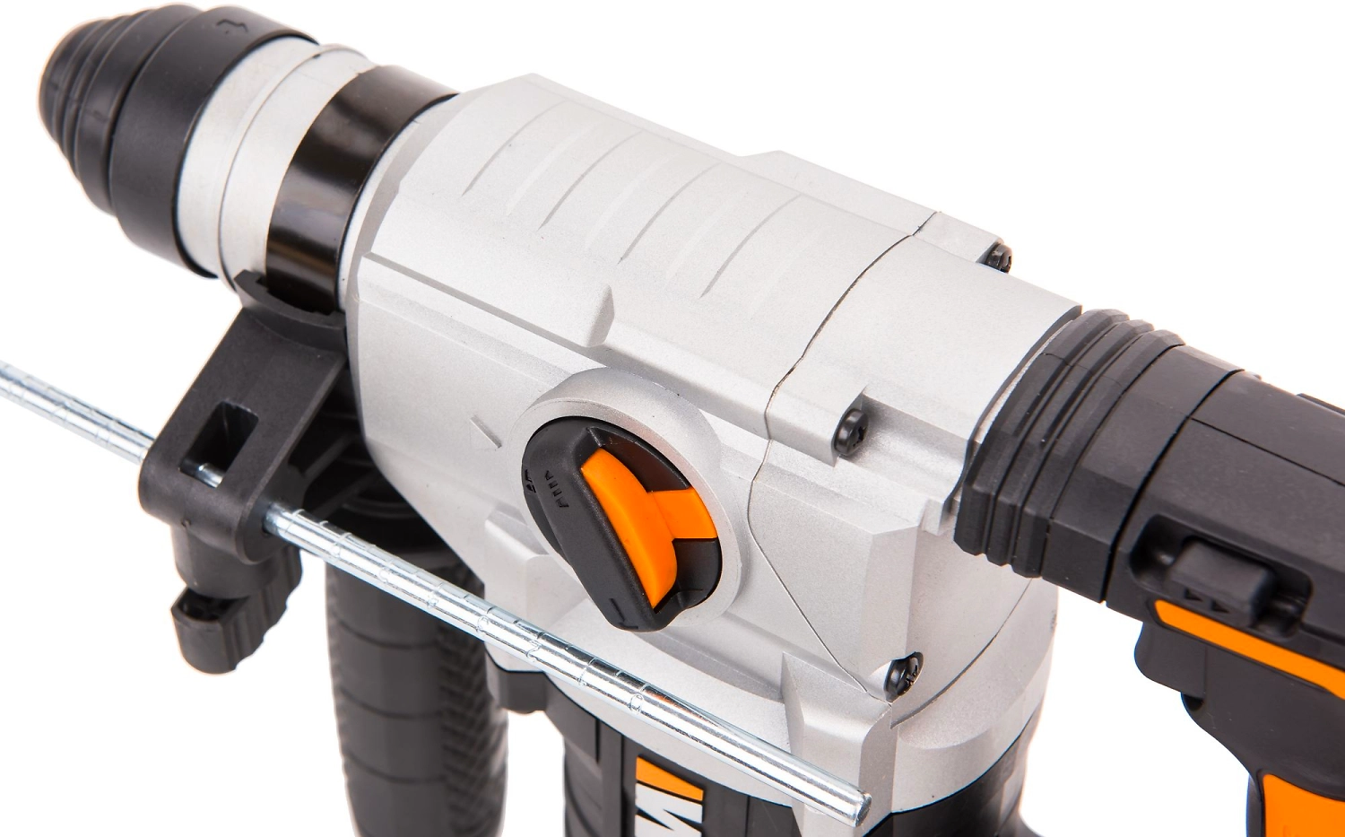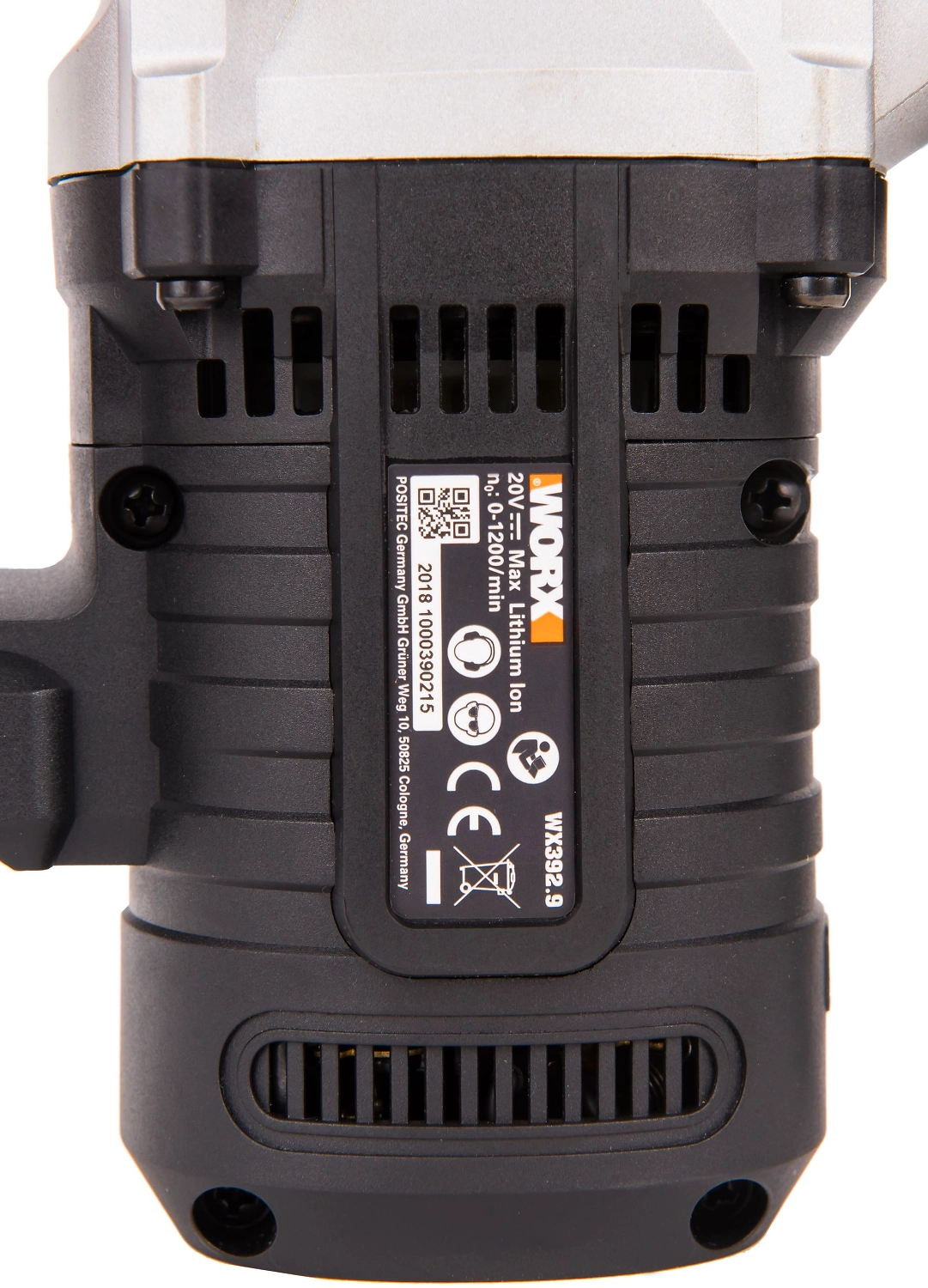 Перфоратор аккумуляторный Worx WX392.9 легко справится с кирпичной кладкой, бетоном или металлом.