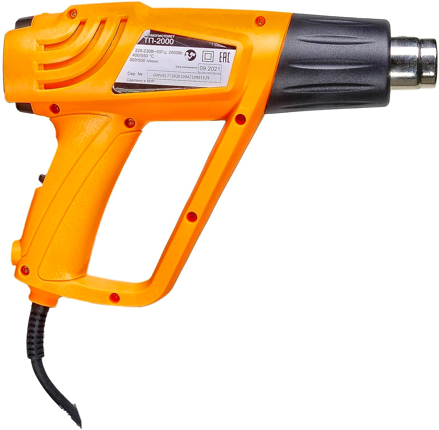 **Термопистолет (фен промышленный) ВИХРЬ ТП-2000** - ручной электроинструмент для обработки горячим воздухом поверхностей и материалов, для удаления красок, формования и сварки пластмассы, нагревания