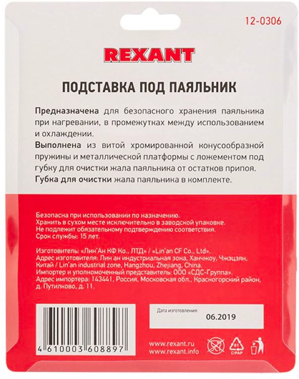 Подставка под паяльник REXANT предназначена для безопасного хранения паяльника при нагревании, в промежутках между использованием и охлаждении.