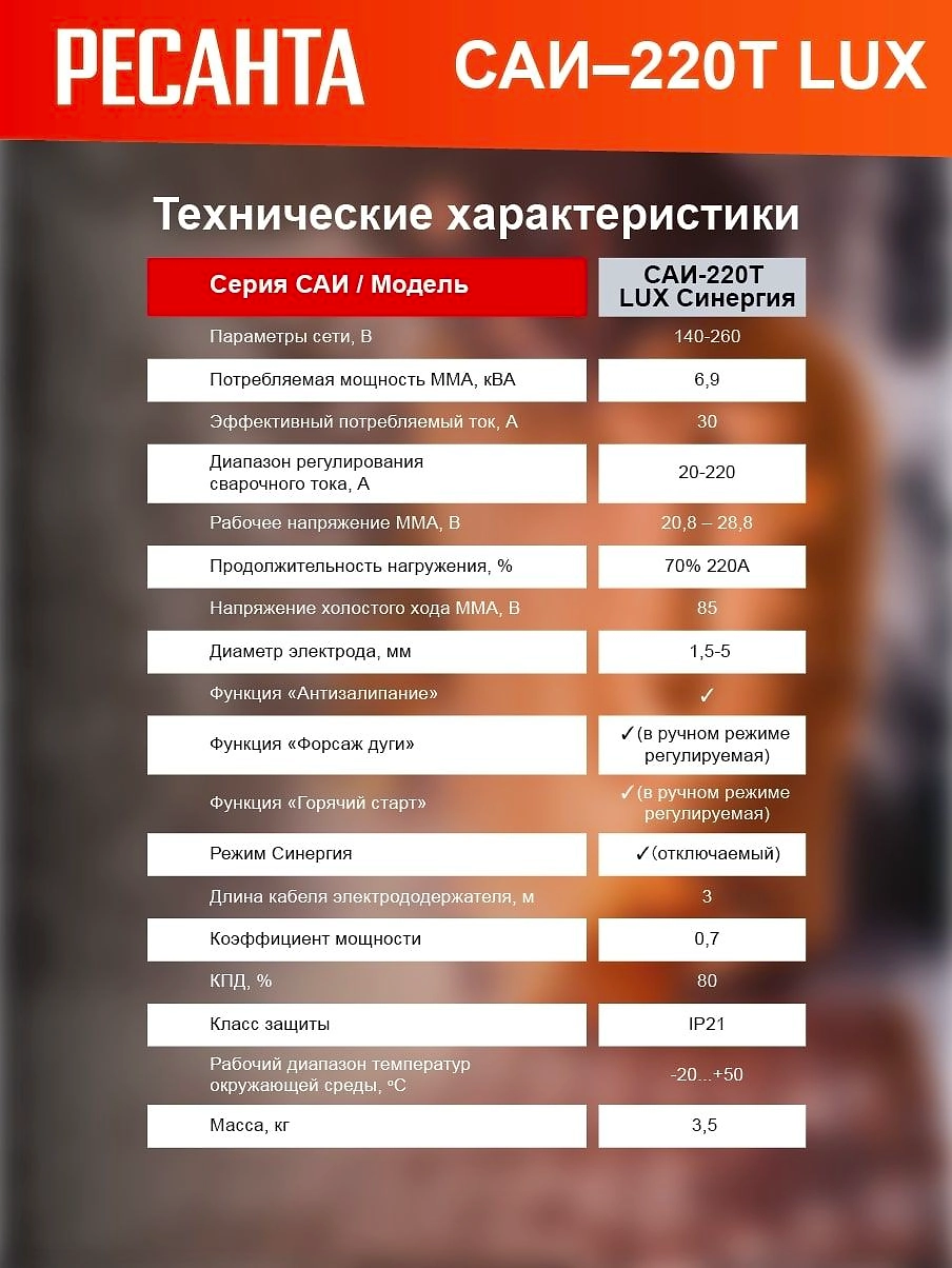 Сварочный инвертор РЕСАНТА САИ 220Т LUX