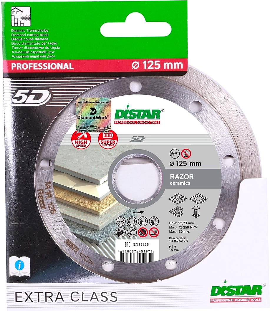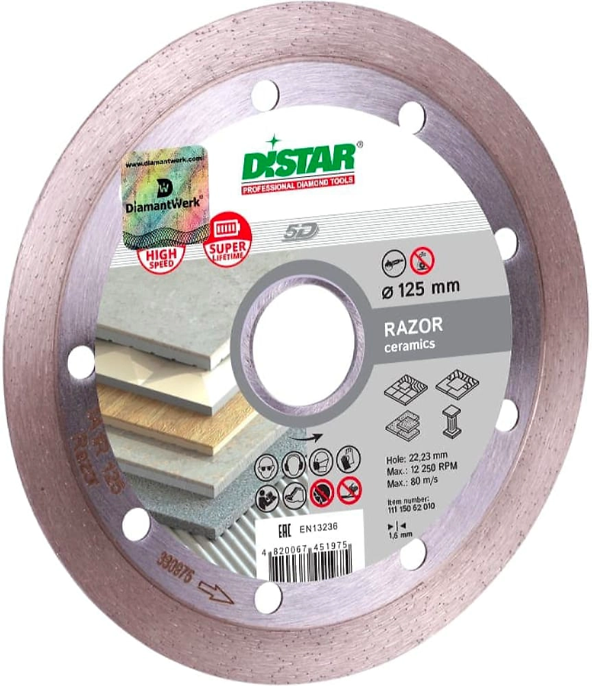 При работе с диском DISTAR RAZOR обеспечивается гладкая кромка, и полностью исключается повреждение плитки, растрескивание покрытия и прочие дефекты.