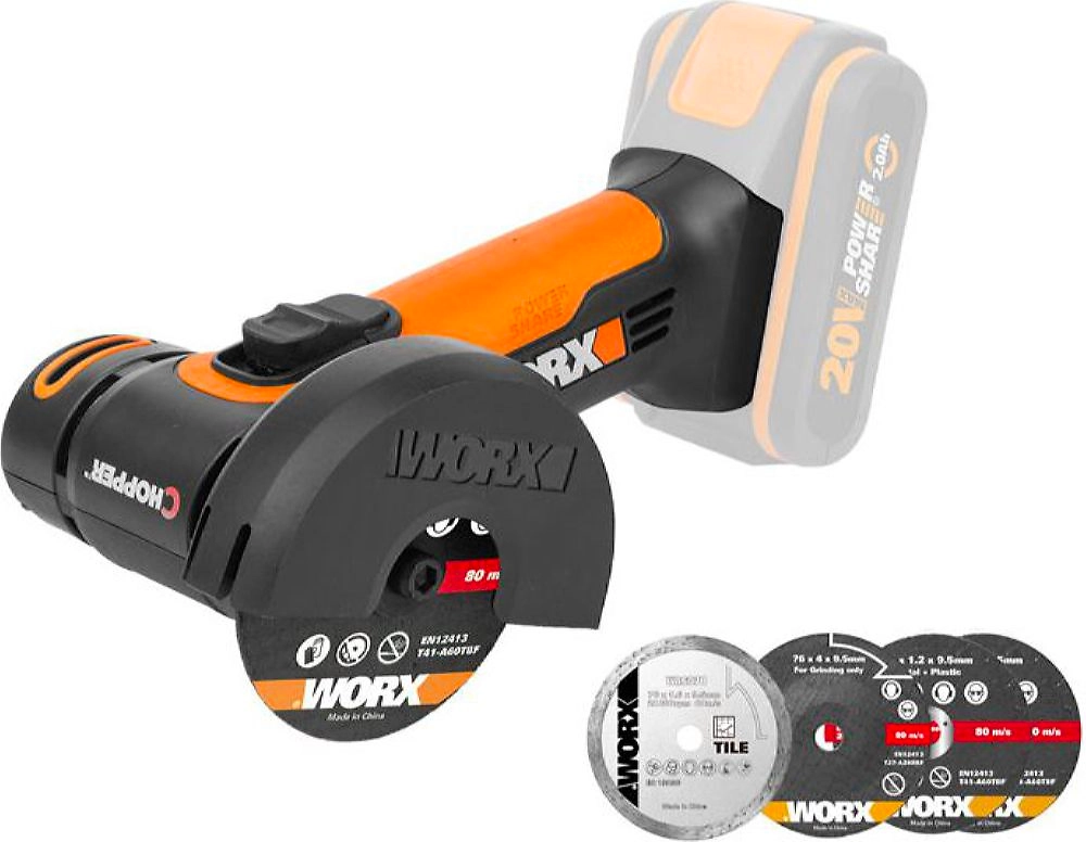 WORX WX801.9 - Аккумуляторная отрезная машина - предназначена для резки металла, плитки пластика и т.д. Высокая эффективность резки благодаря высокопроизводительному двигателю.