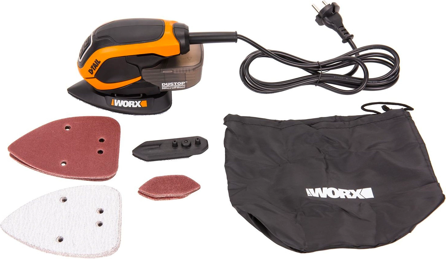 WORX WX648 работающая от сети 230В мультифункциональная шлифовальная машина мощностью 65Вт. Компактность и небольшой вес для работы в труднодоступных местах. Удобная нескользящая ручка.