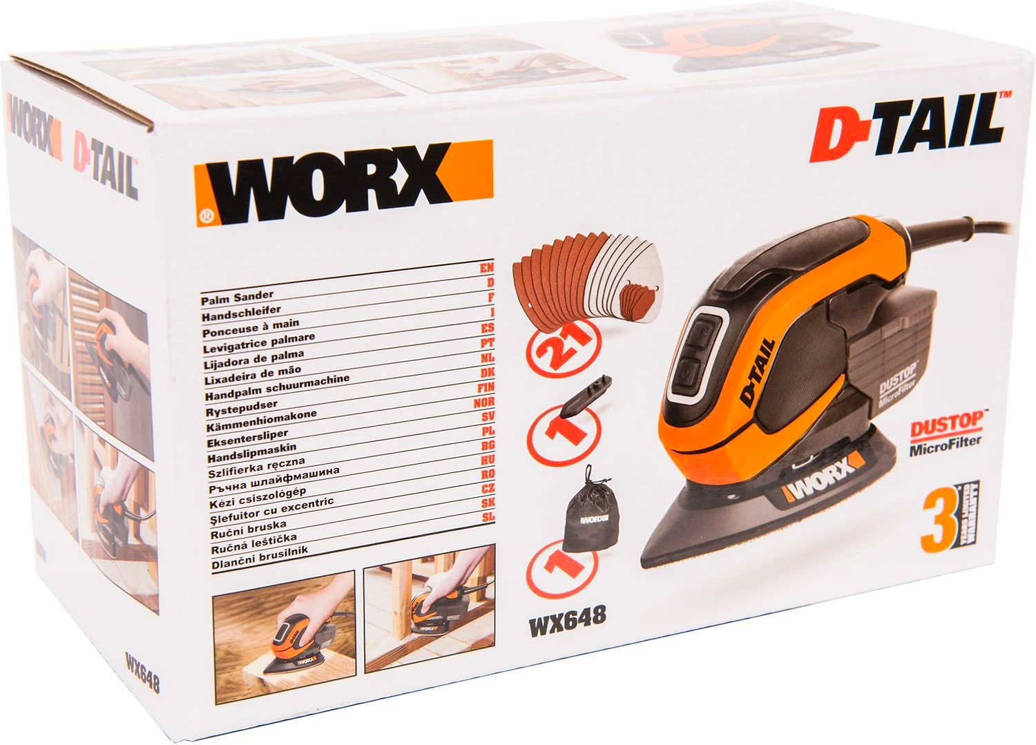 WORX WX648 работающая от сети 230В мультифункциональная шлифовальная машина мощностью 65Вт. Компактность и небольшой вес для работы в труднодоступных местах. Удобная нескользящая ручка. Система быстрого зажима листа hook and loop. Шлифовальная бумага, предназначенная для удаления краски. Данная модель поставляется в картонной коробке.