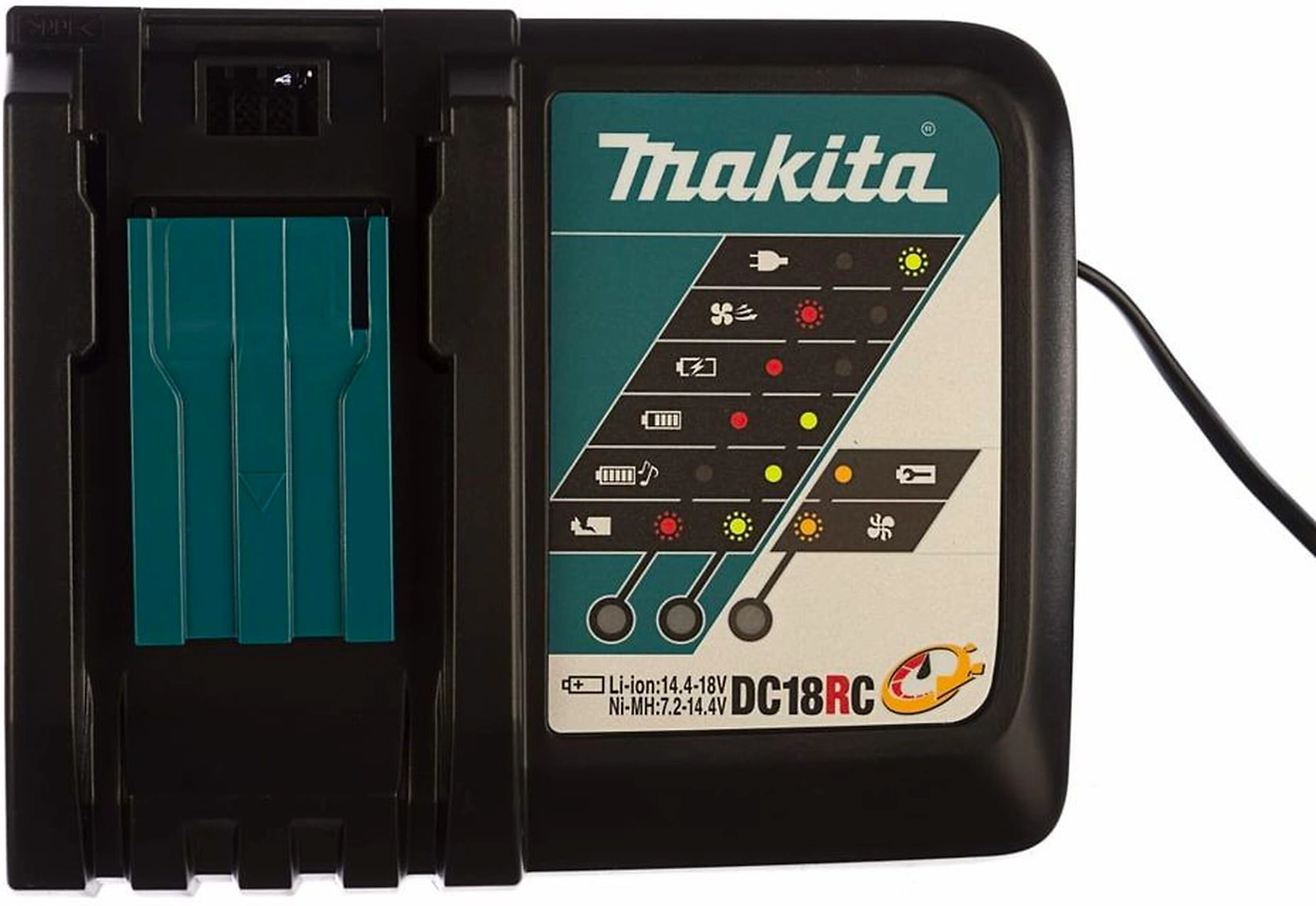 Быстрое зарядное устройство для аккумуляторов-слайдеров LXT 14,4 В и 18 В. Имеет охлаждающий вентилятор, который охлаждает аккумулятор для ускорения зарядки. Зарядка оптимизирована с точки зрения напряжения, силы тока и температуры. Заряжает батарею за 15–55 минут в зависимости от емкости батареи.
