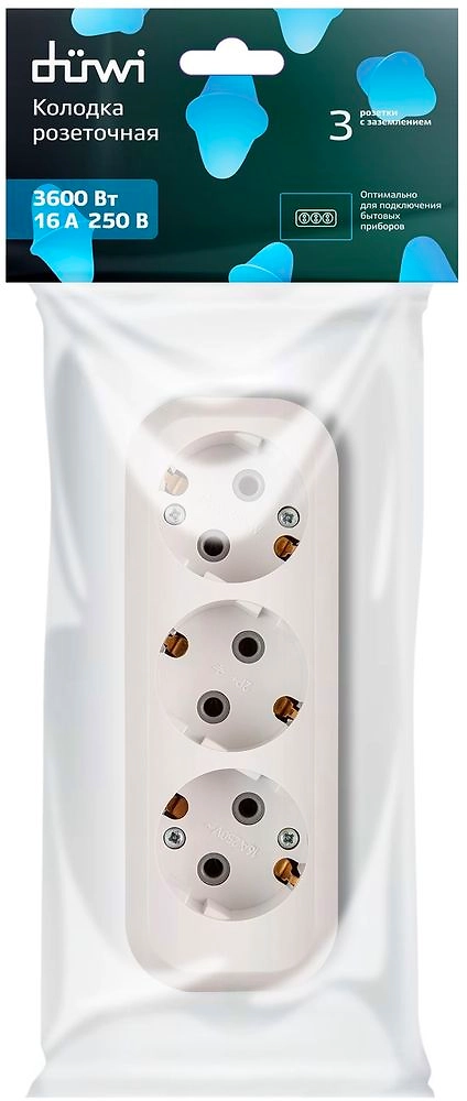 Колодка Duwi 3 гнезда 3600 Вт с заземлением