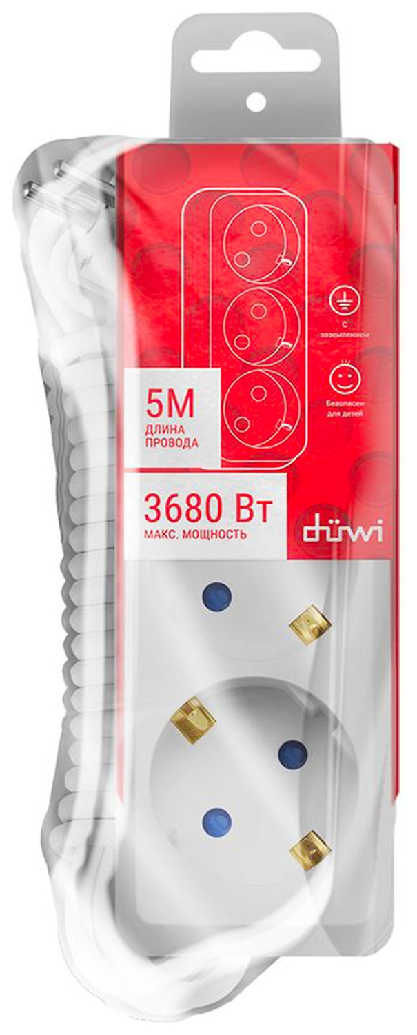 Удлинитель Duwi 3 гнезда с заземлением 5 м белый