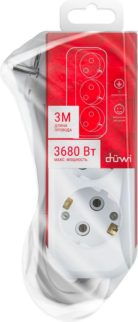 Удлинитель Duwi 32056 2 3 гнезда 3680 Вт с заземлением 3 м